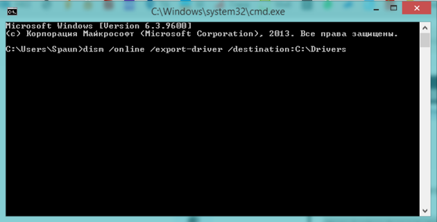 - 3. Далее в командной строке вводим следующий код: dism /online /export-driver /destination:C:\Drivers